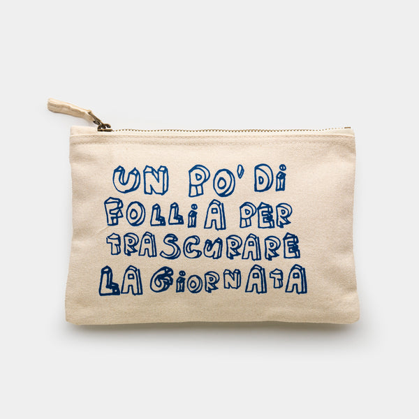 Pochette 22,5 x 16 cm, canvas cotone organico, serigrafia artigianale.